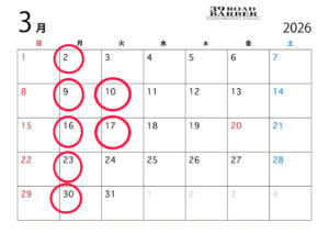 3月営業カレンダー 2026-02-25 新着情報 3月の営業カレンダーのお知らせです。 3月・4月は卒業式や入学式のシーズンとなり混み合いますのでお早めのご予約をお願いいたします。 ご予約・ご来店お待ちしております!! ※⭕️定休日